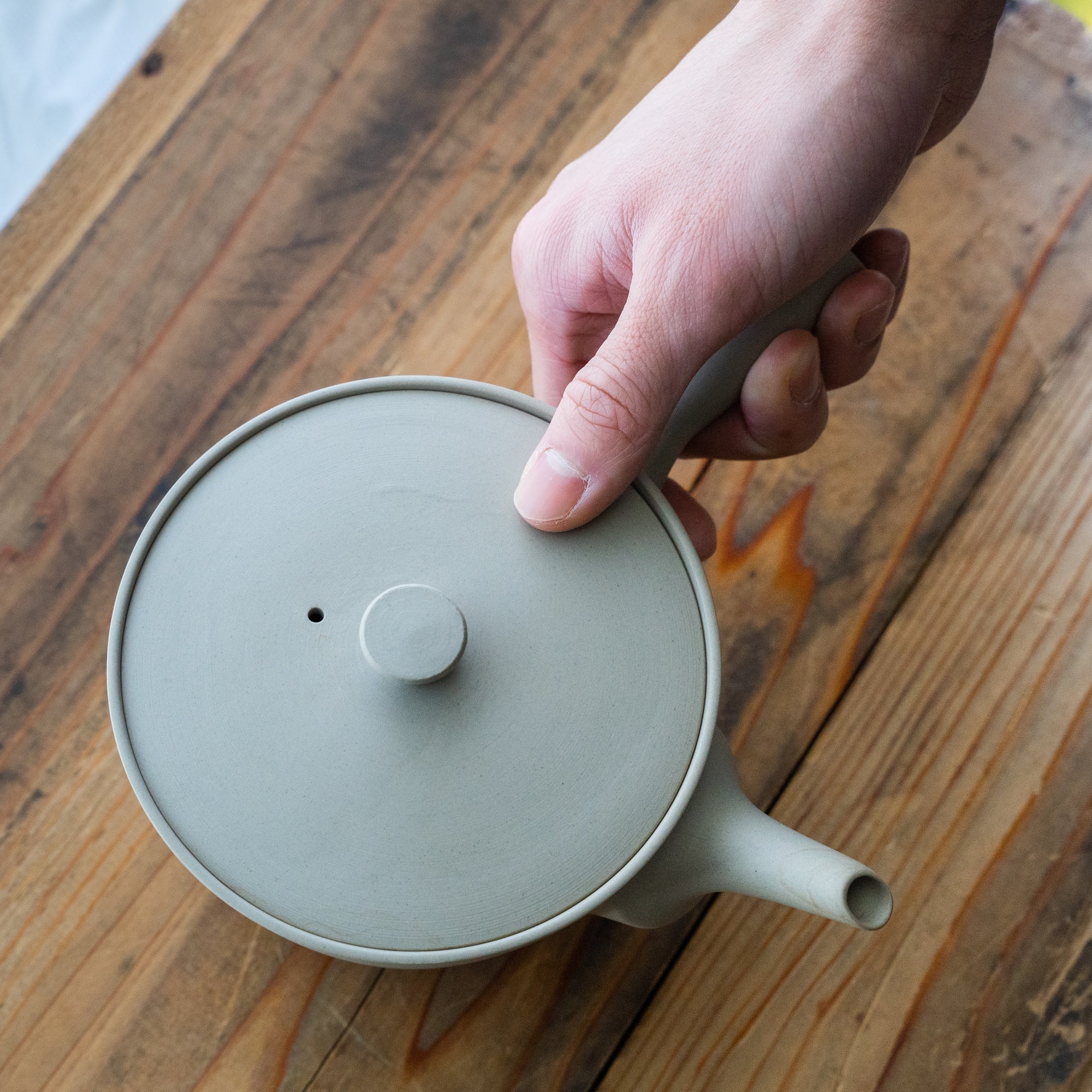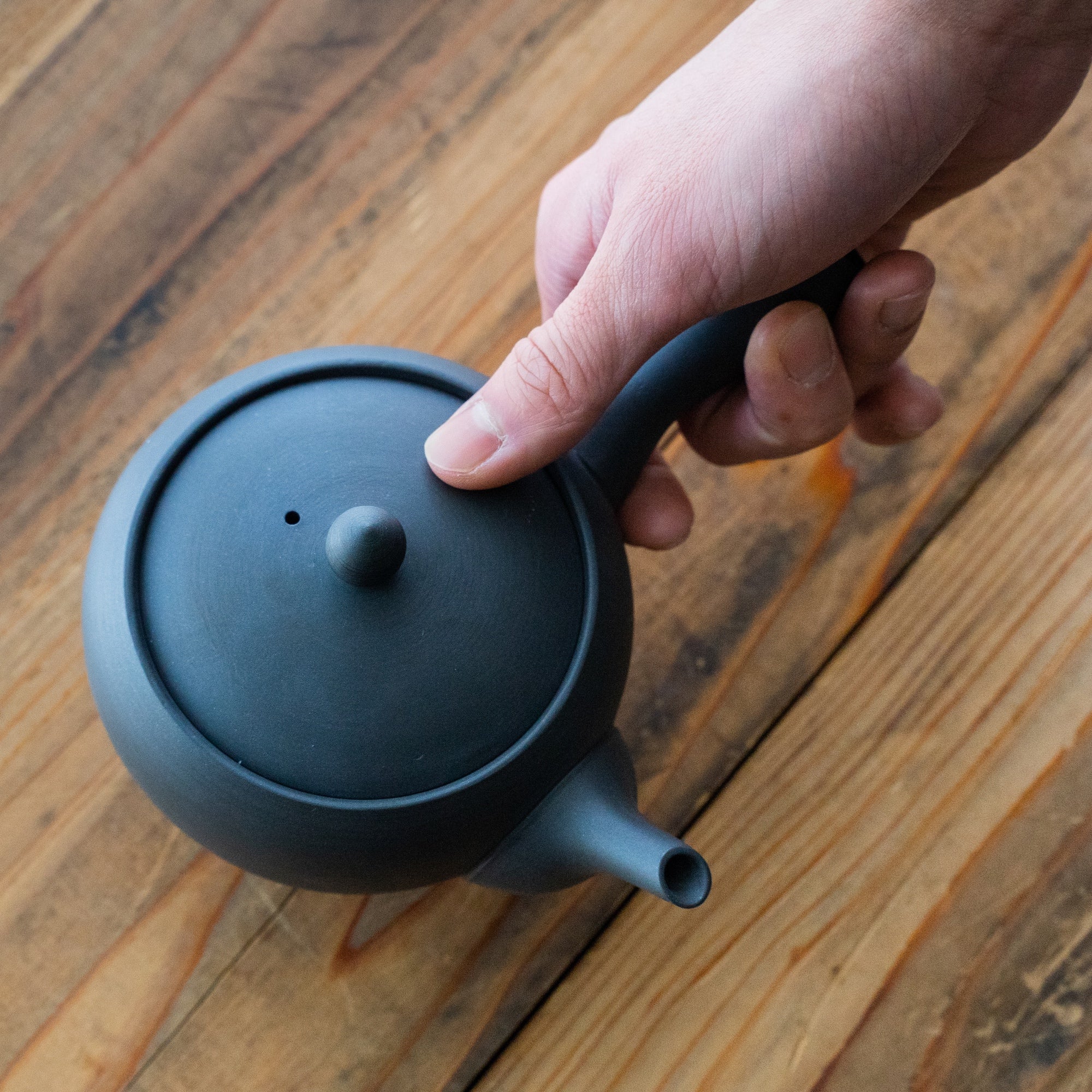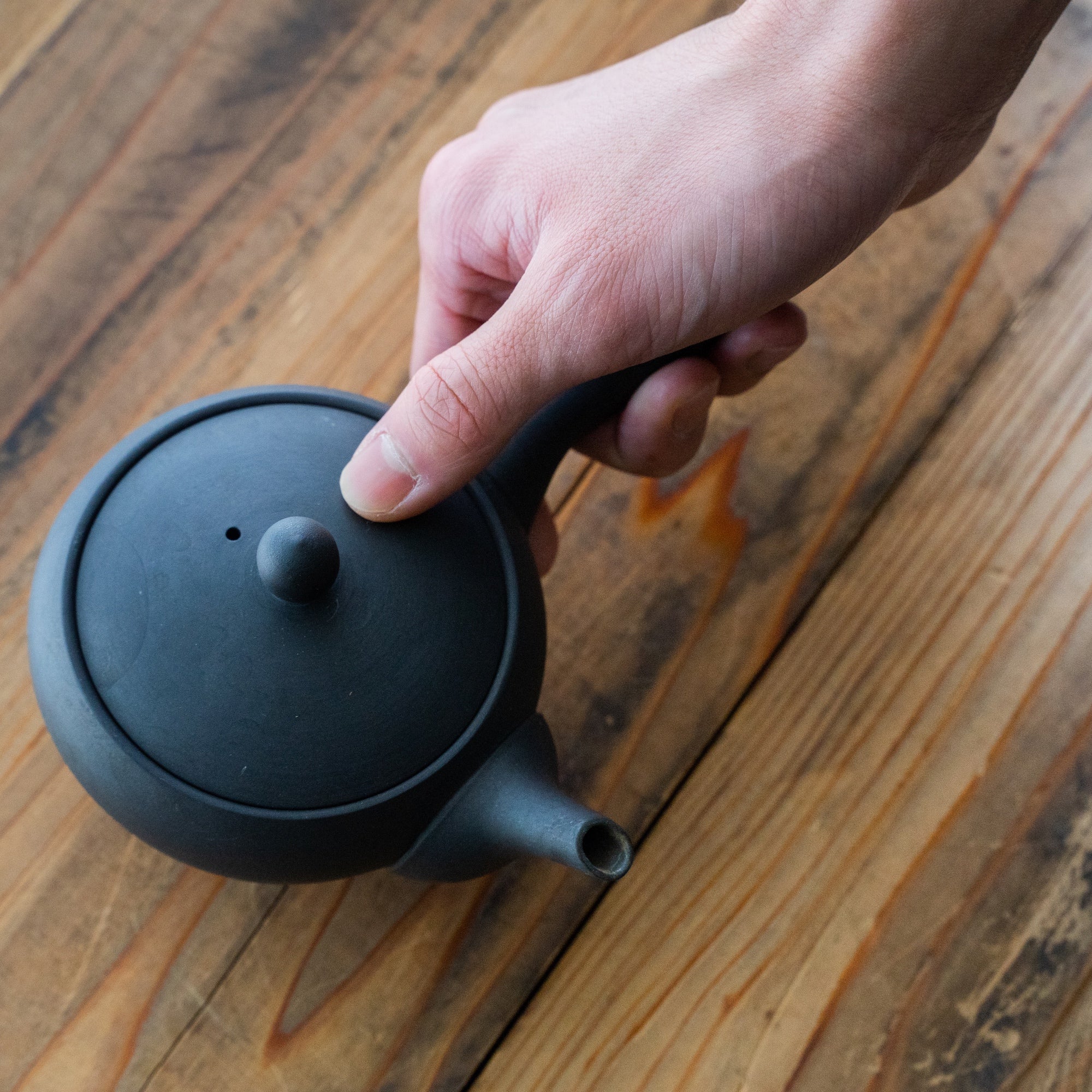 “We sharpen every teapot lid with a whetstone one by one. Rubbing each other makes higher sealability. Let alone the advantage of pouring tea without leakage, I wished a user would enjoy the action of the lid. This effort may be too much but we’d like to focus on these points. ”