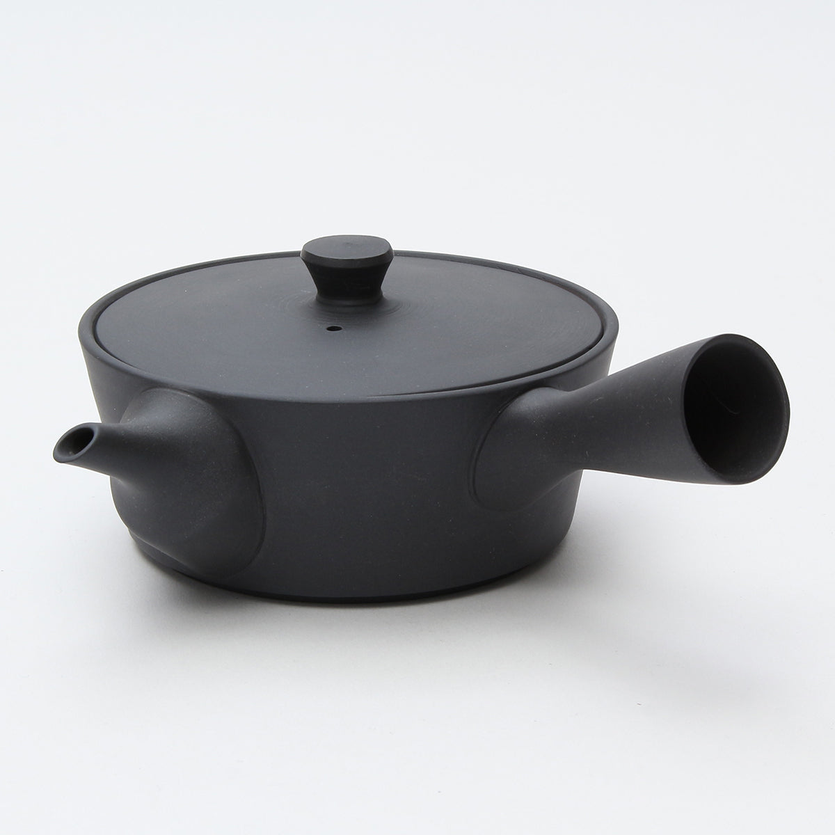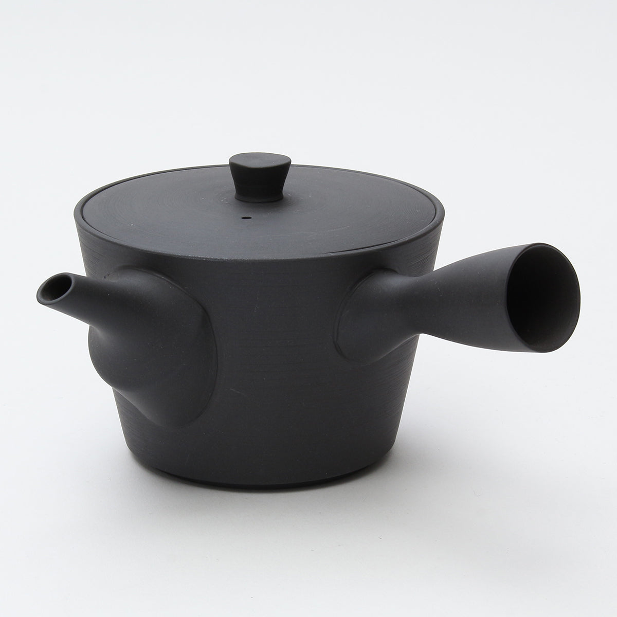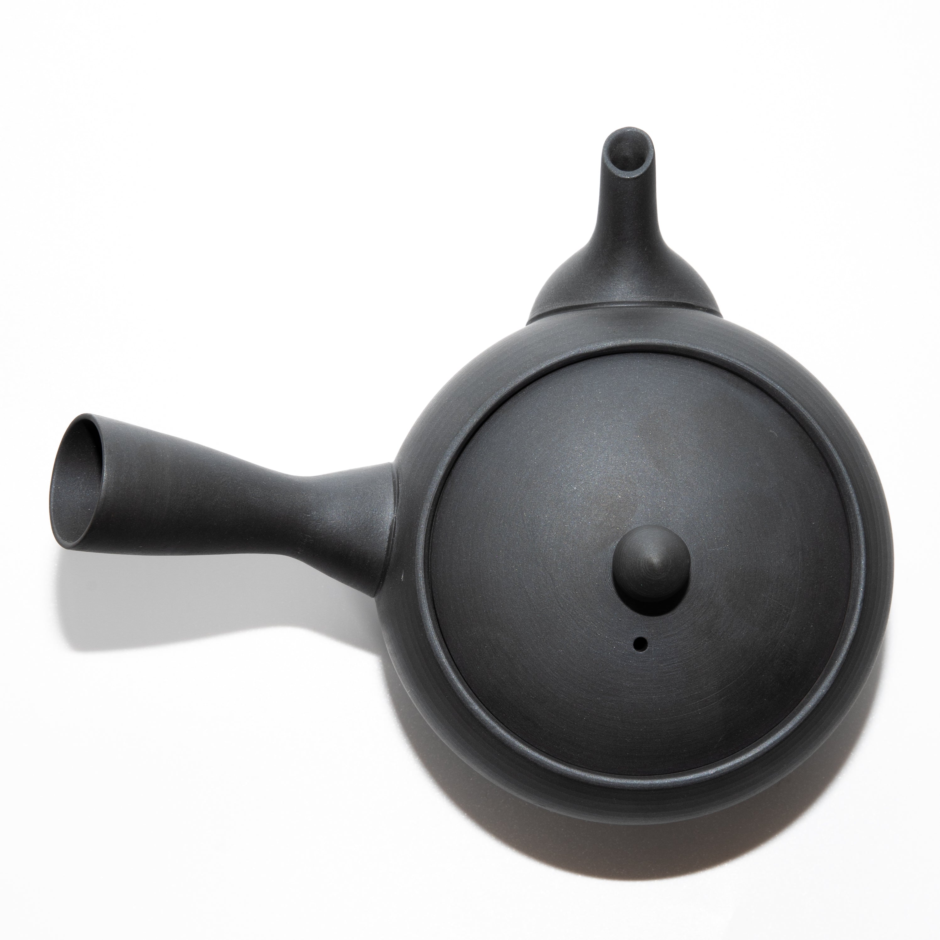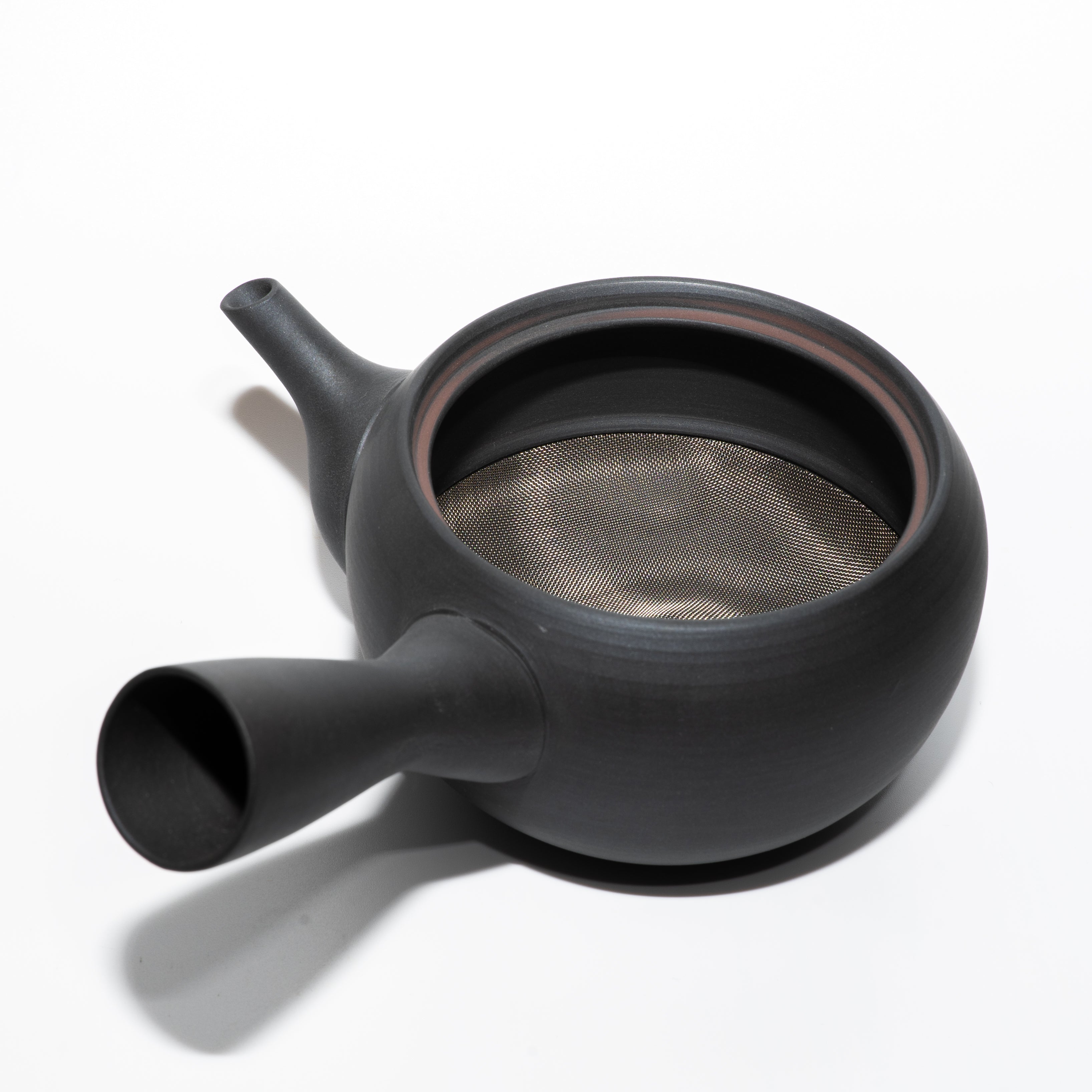 Mr. Araki explained that he liked a matte texture from the beginning. Without any specific image of a teapot he would want, he started producing a matte black one that utilized the color of original materials.